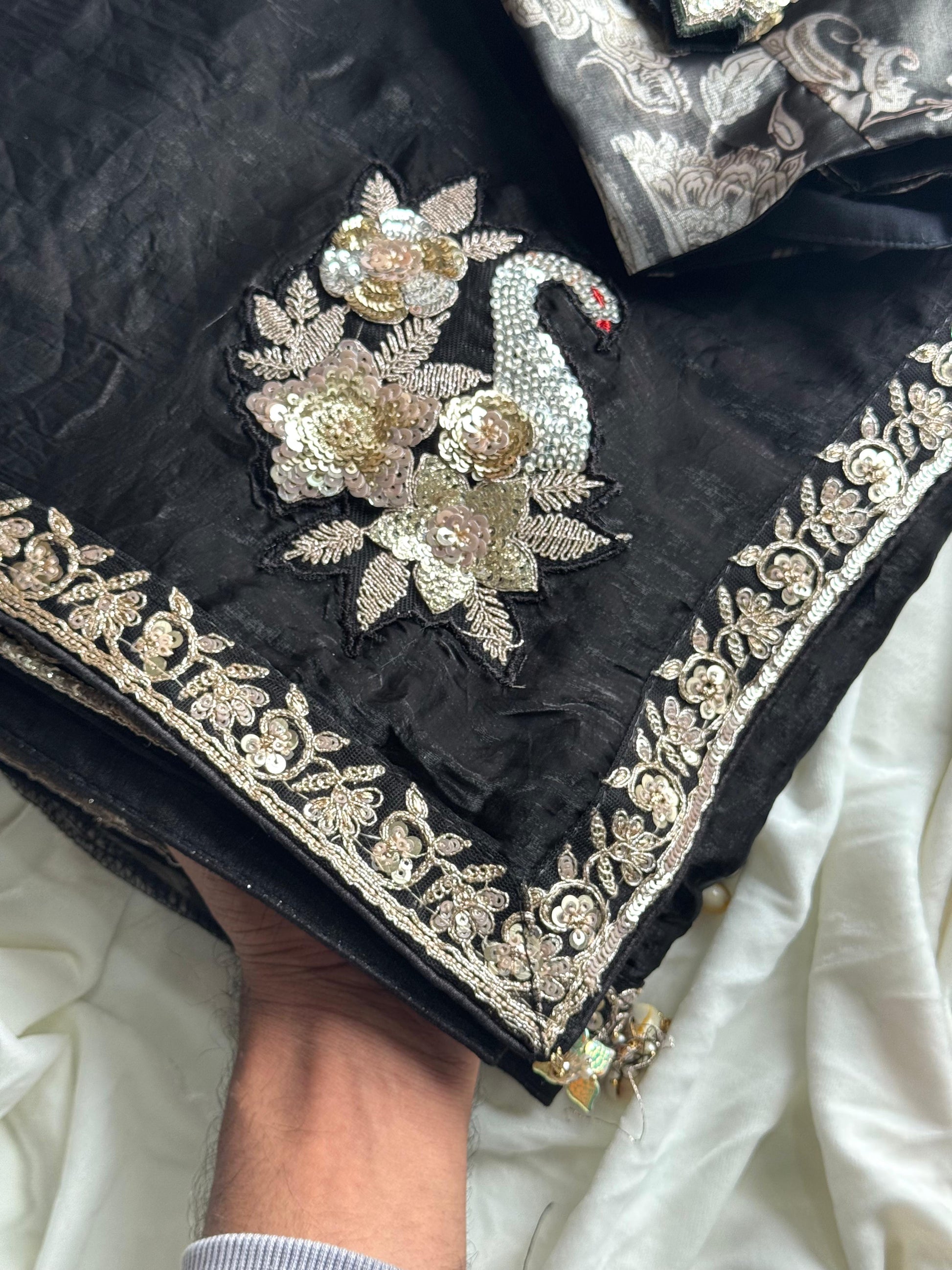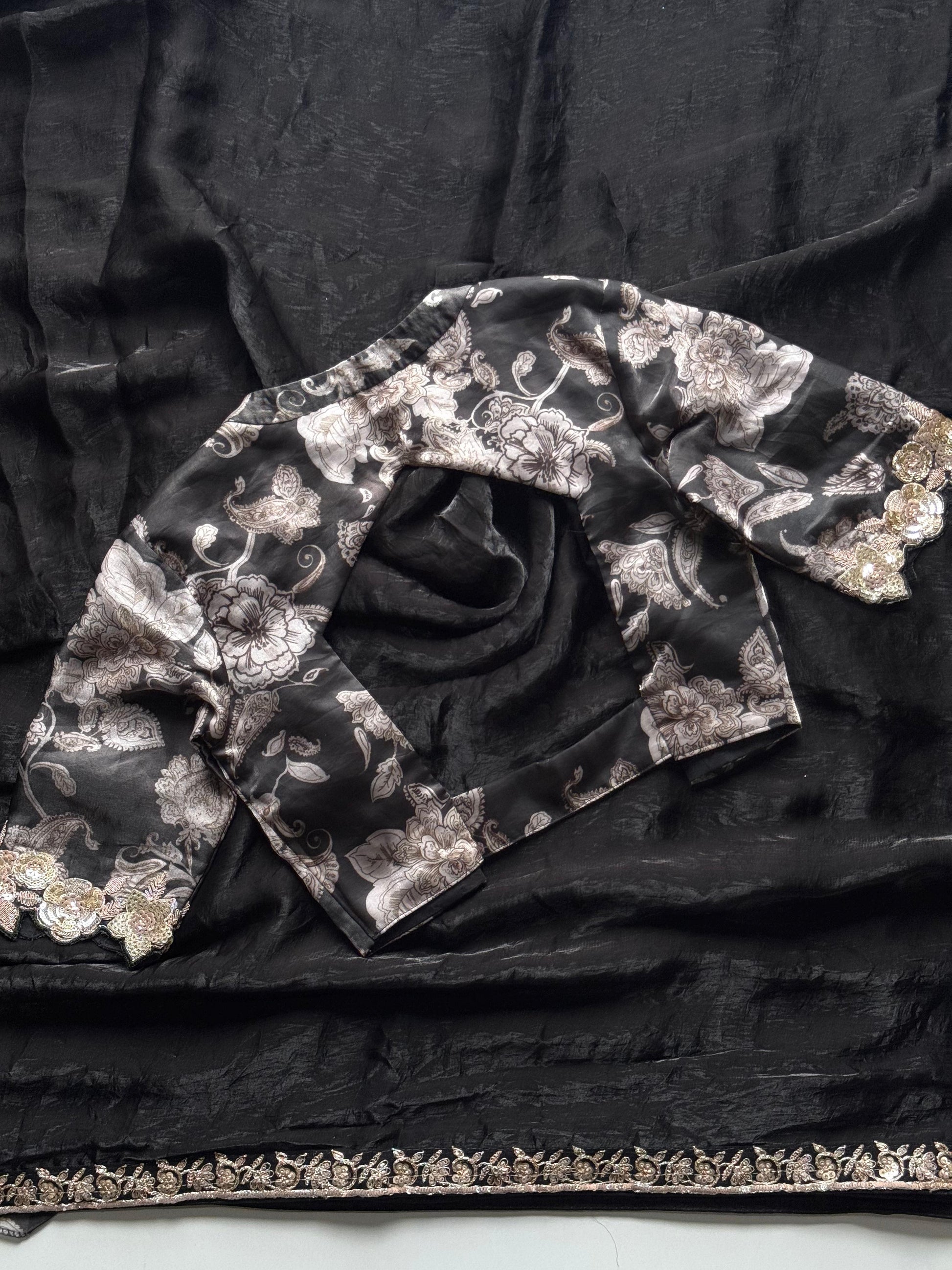 🖤 Teamed with Designer Stitched blouse of fully Multi sequence worked