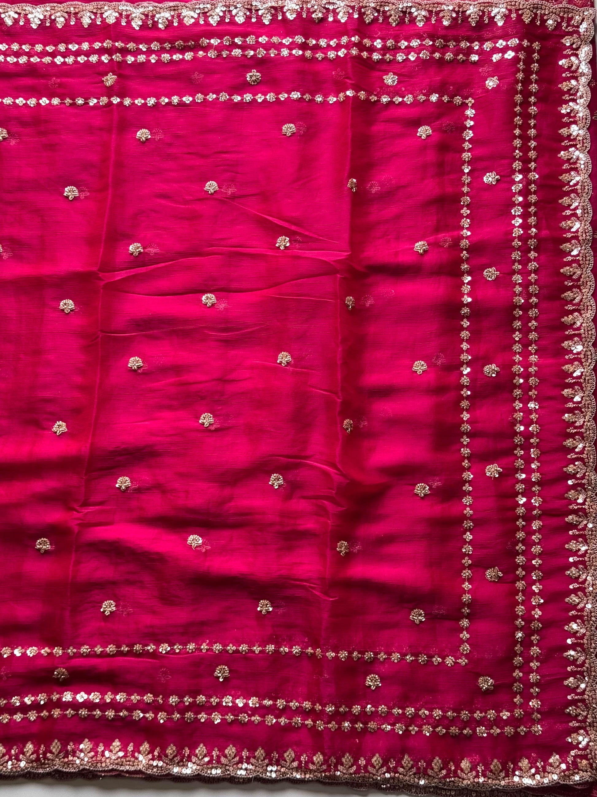 š soft nylon Tissue crepe silk saree with heavy pearl sequence cutdana handwork*