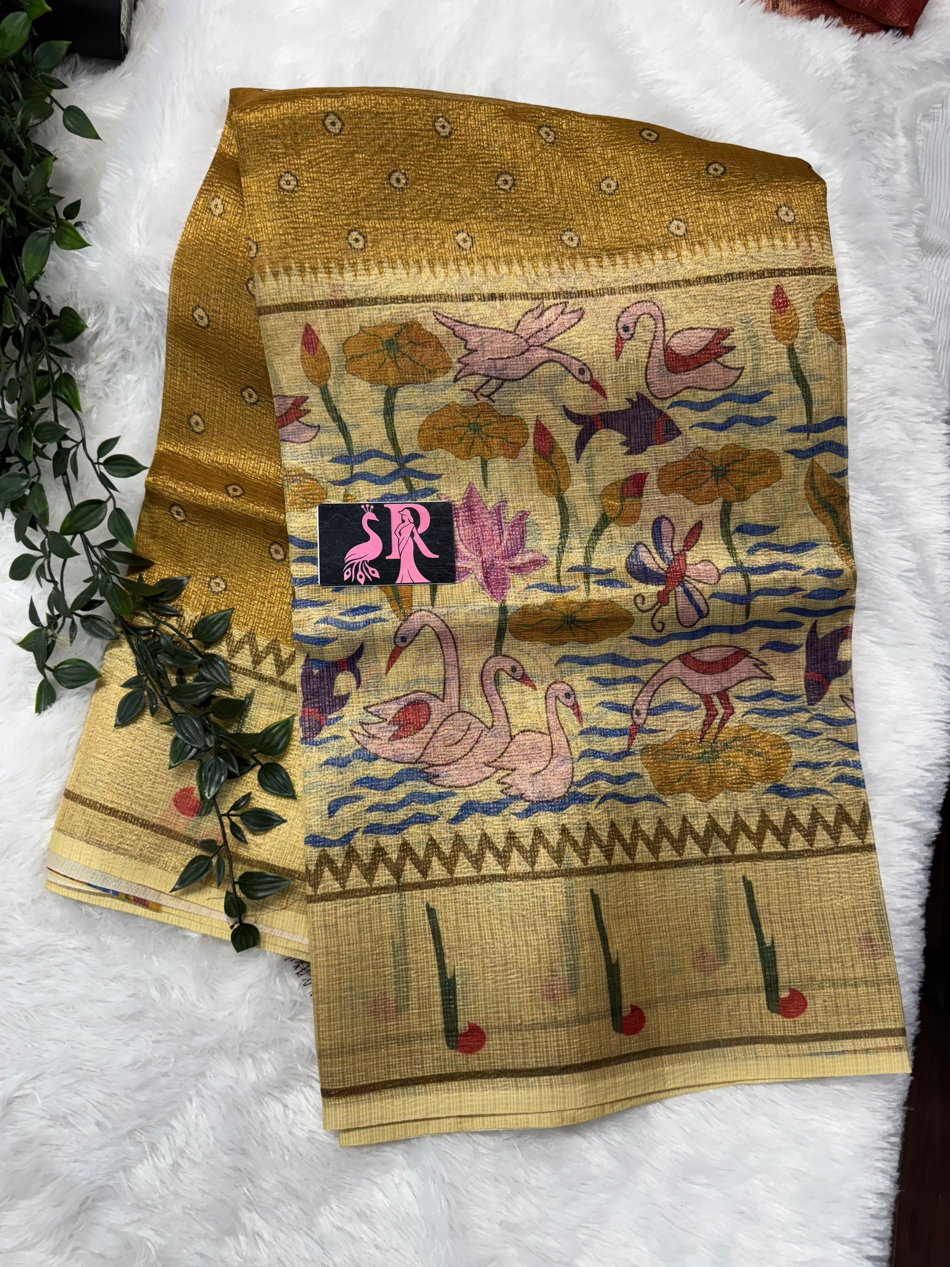 Crush zari Kota saree with Bandhini and Paithani fusion concepts..