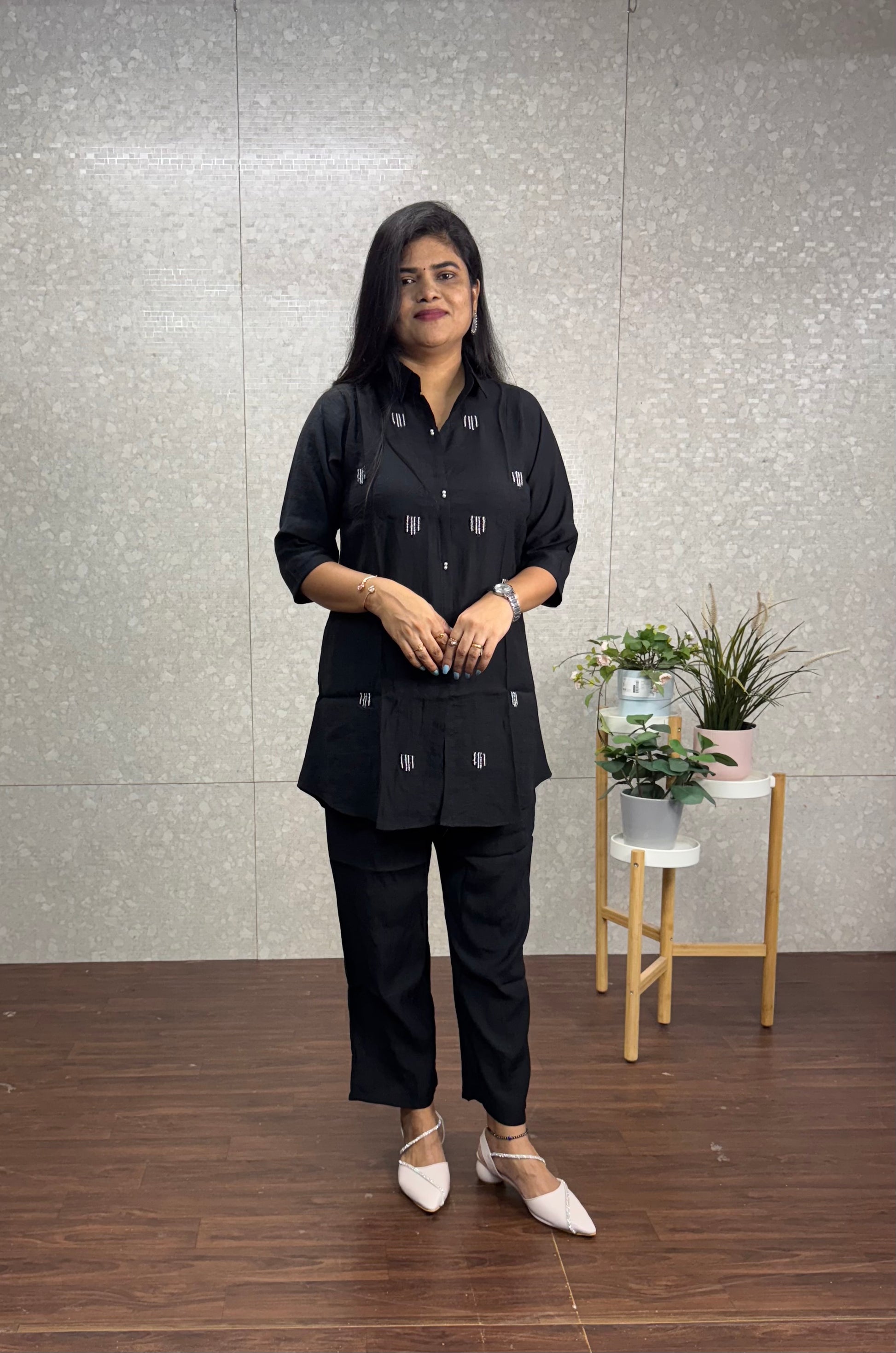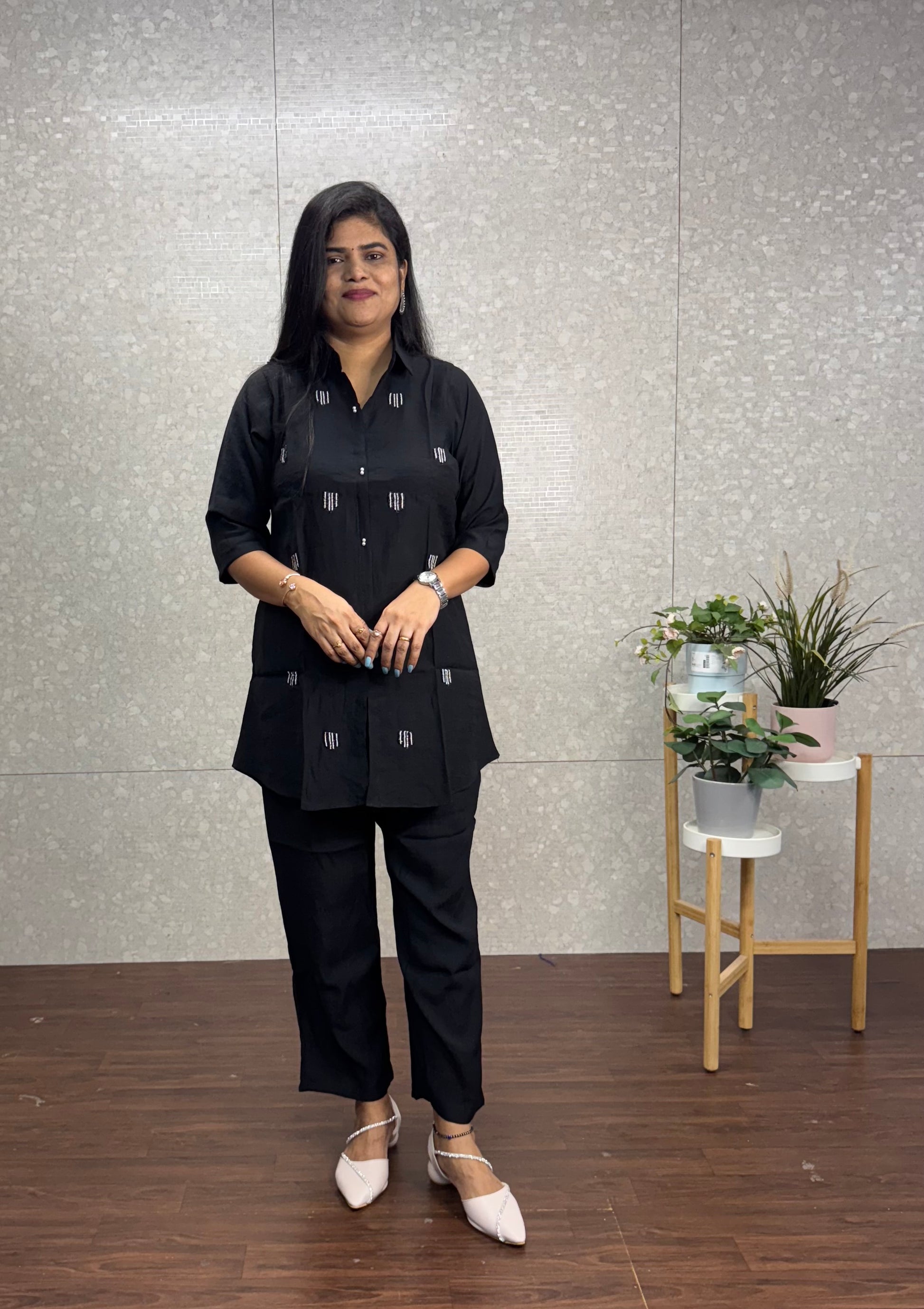 Imported cotton cord set with thread work on top and self colour pants