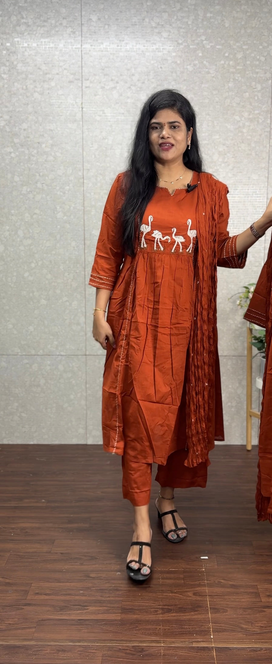Pure mulcotton dres flamingo embroidery with thread and beads highlighted thread work on neck n sleeve paired with sequin buti dupatta and pants