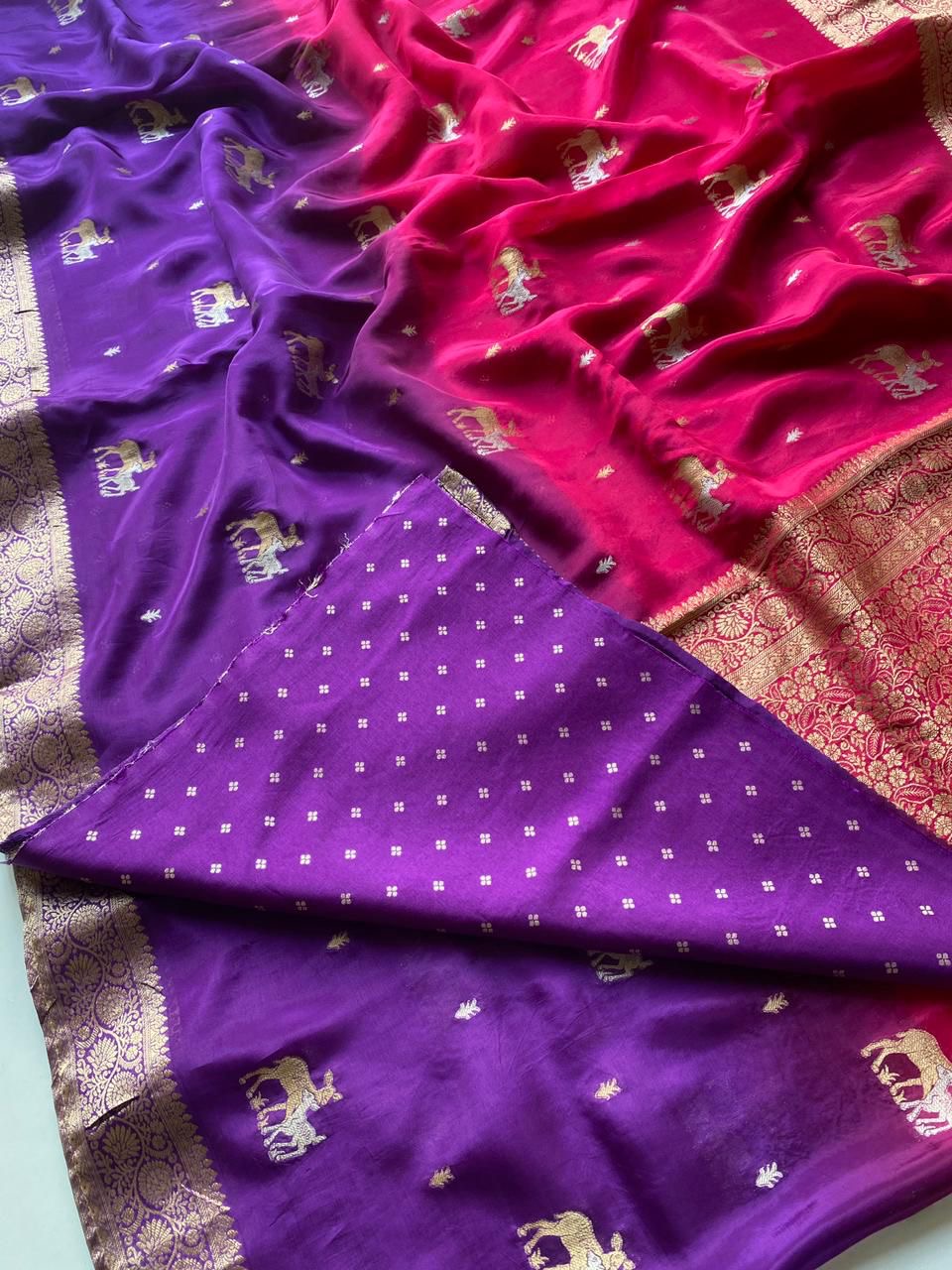 Pure H.O silk sarees with beautiful two shade design with all over viscose thread deer pattern and rich pallu
