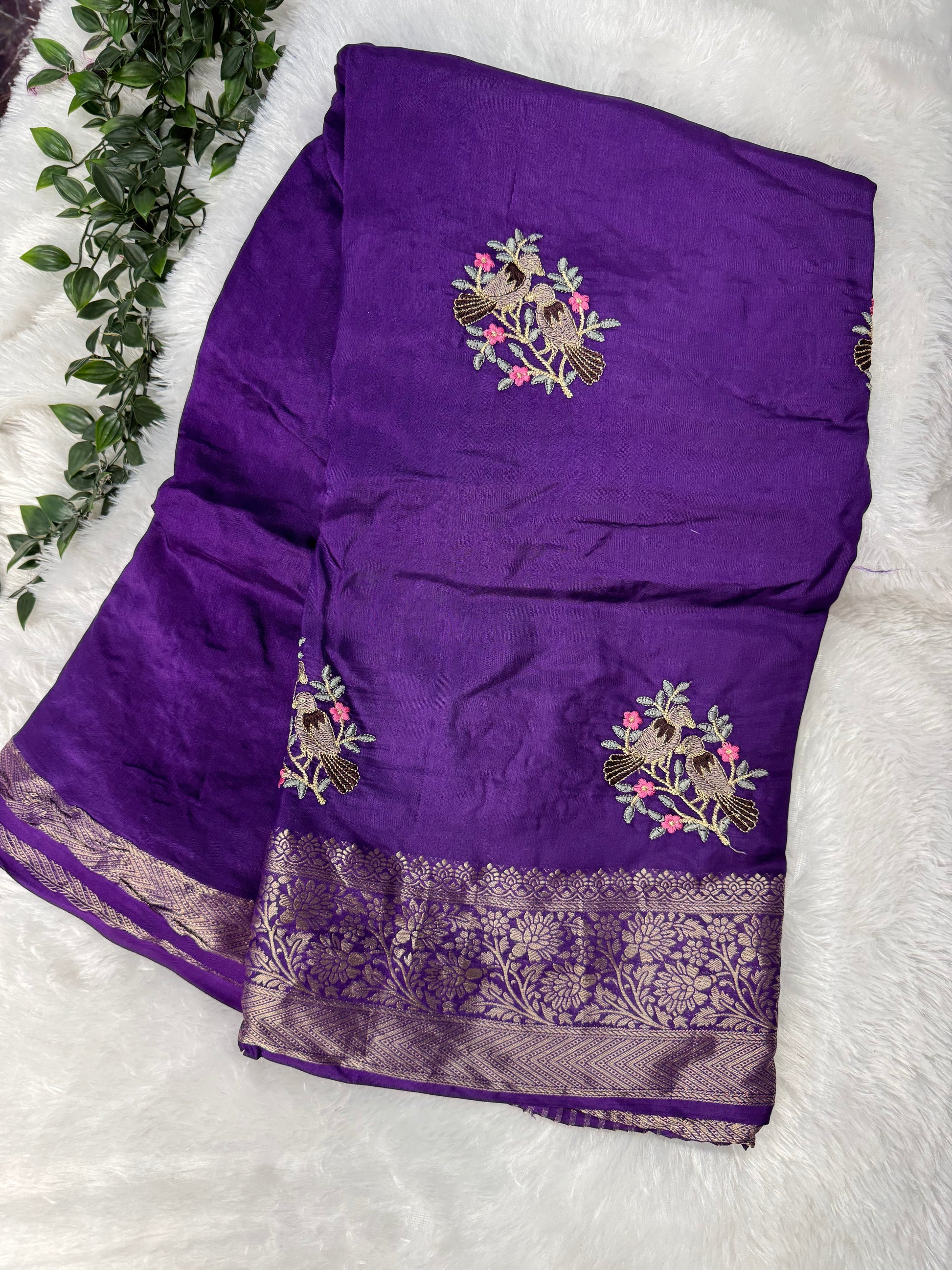 Pure Russian silk saree with embroidery motifs all over d saree paired with self colour meenakari weaving buti blouse