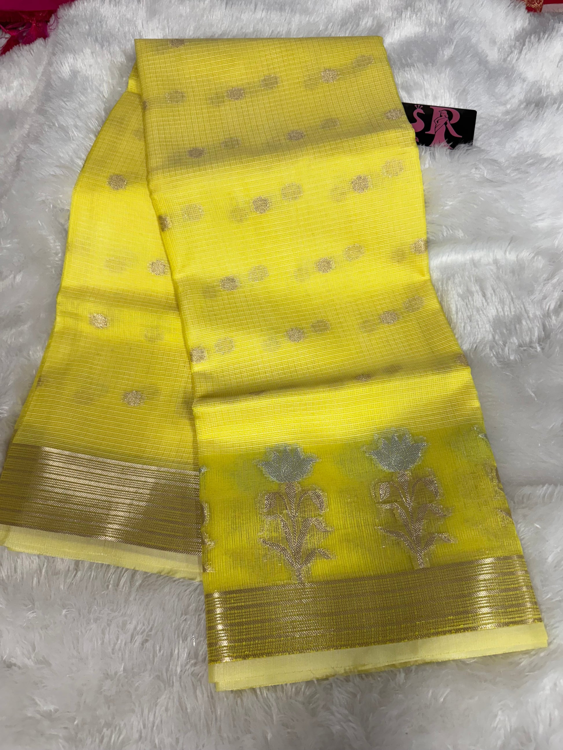 Handloom Pure silk Kota saree with weaving zari borders and self colour blouse