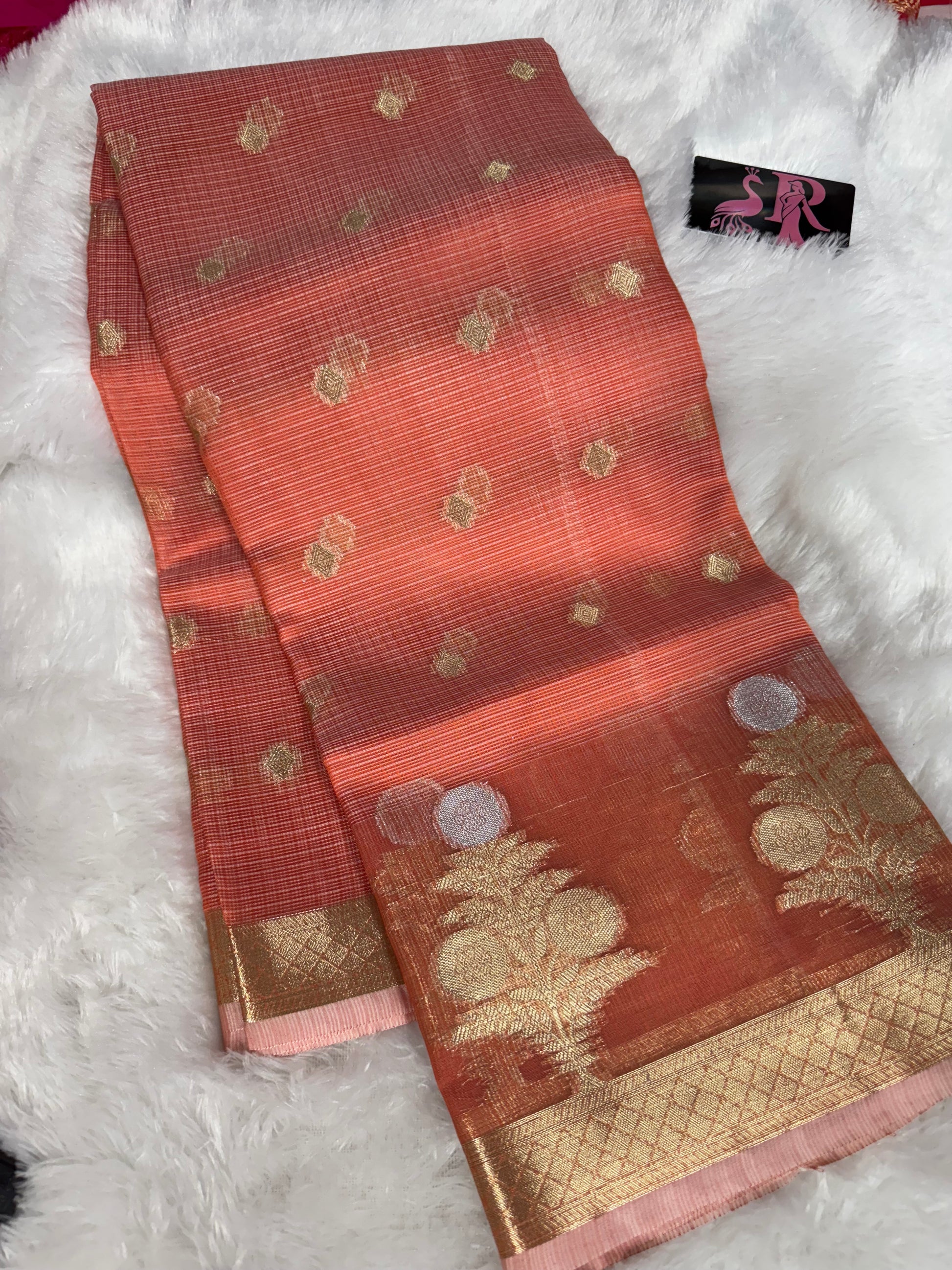 Handloom Pure silk Kota saree with weaving zari borders and self colour blouse