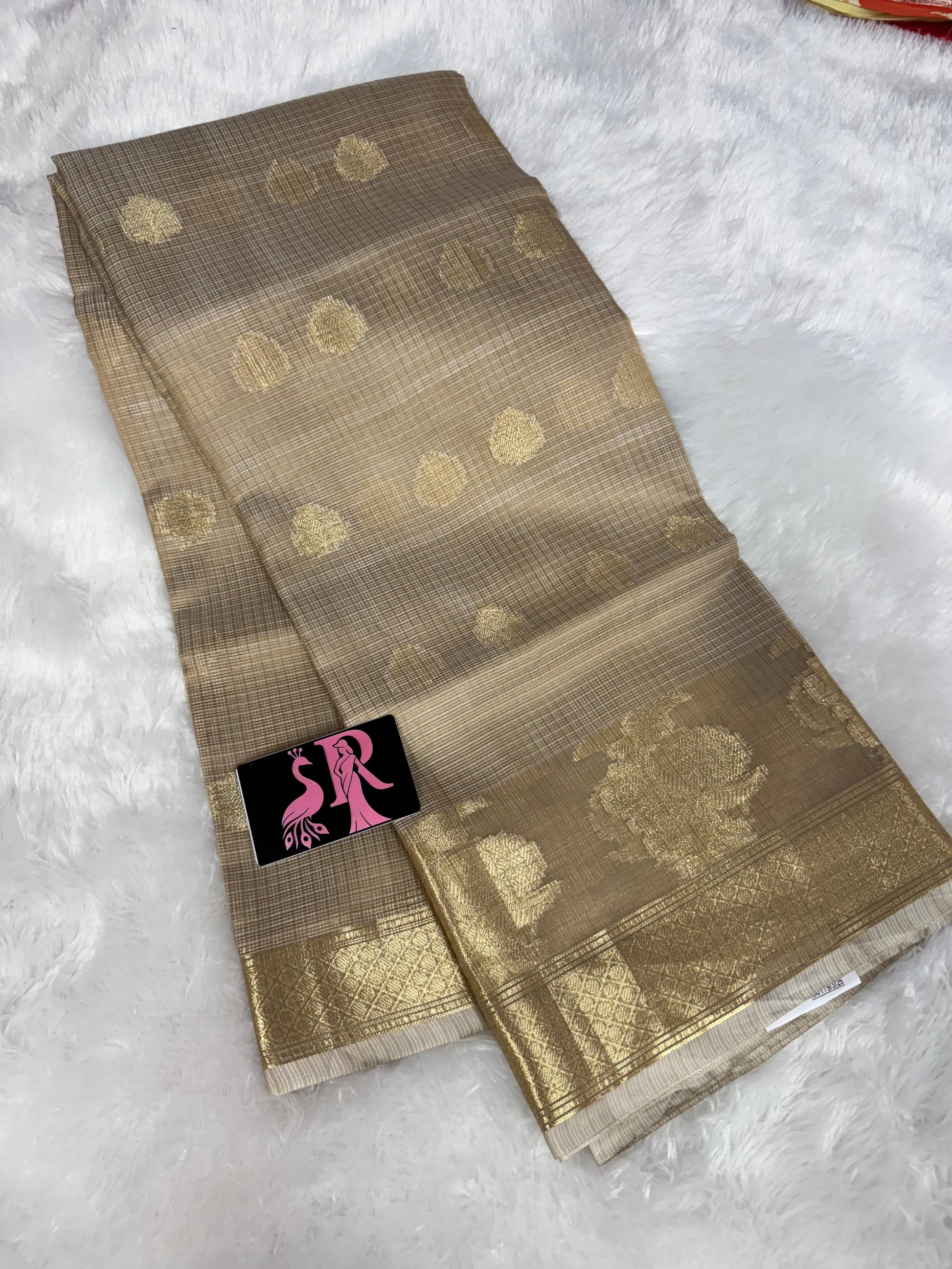 Handloom Pure silk Kota saree with weaving zari borders and self colour blouse