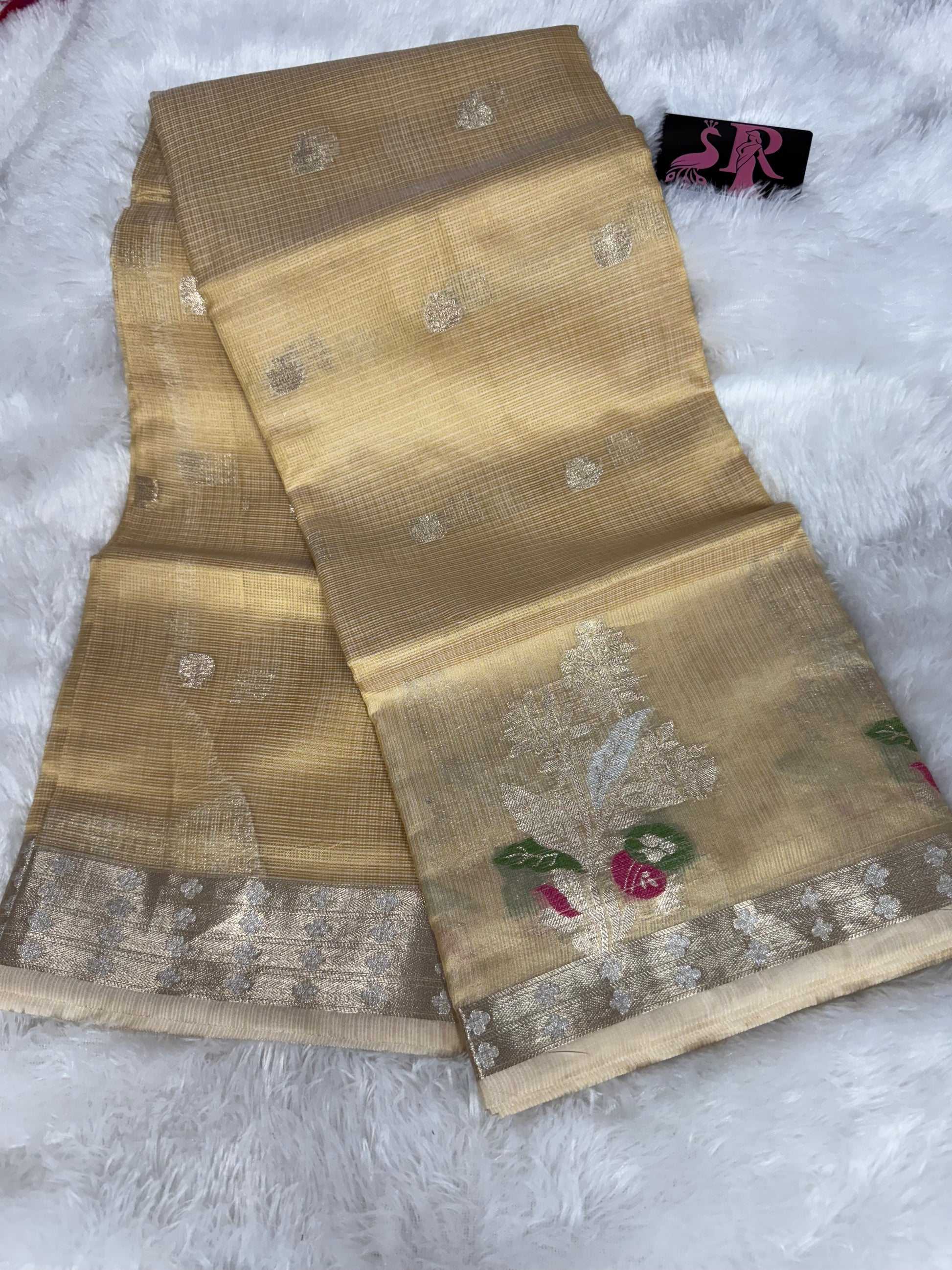 Handloom Pure silk Kota saree with weaving zari borders and self colour blouse