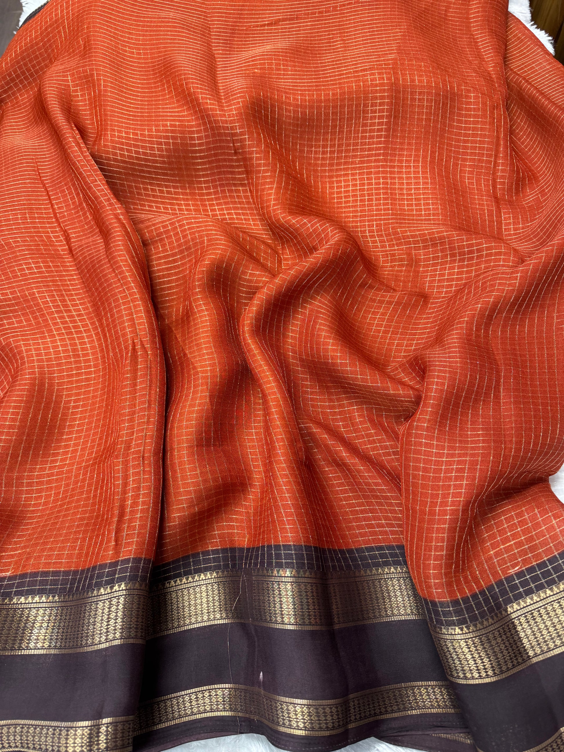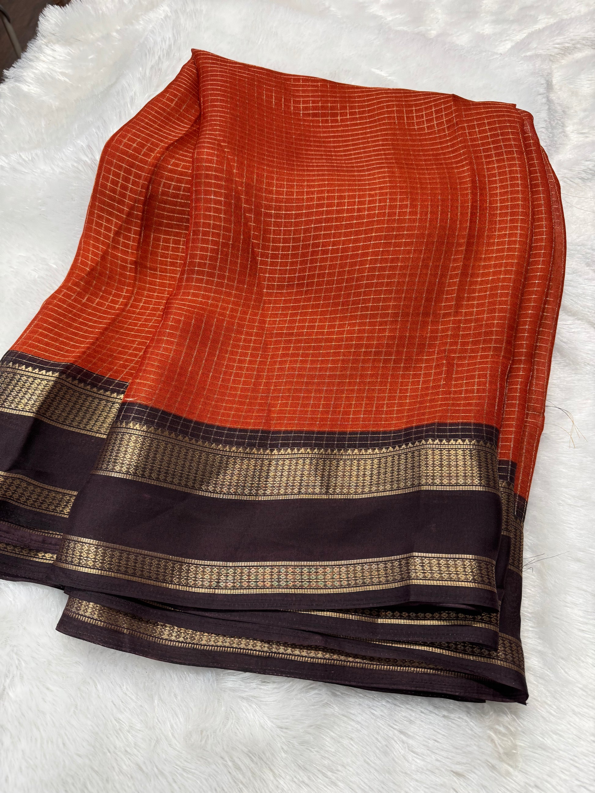 Vintage checks gap border saree with Kalamkari pallu and Kalamkari blouse along with checks
